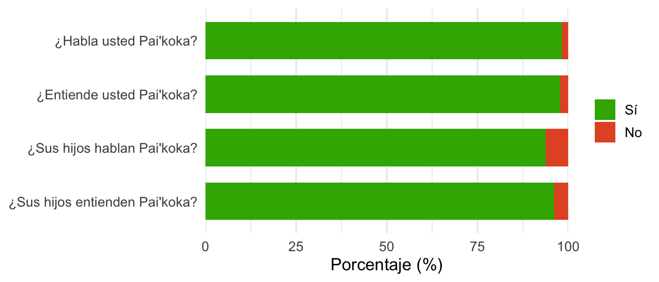Las encuestas fueron realizadas en persona por entrevistadores Siekopai capacitados en Paikoka. Este enfoque ayudó a generar confianza, mejorar la comunicación y asegurar que se respetaran las particularidades culturales. Las entrevistas se llevaron a cabo principalmente en los hogares de los participantes o en un lugar de su elección. Las respuestas se registraron de forma digital, y se tomaron fotos de los formularios de consentimiento firmados como parte de la documentación del proceso.