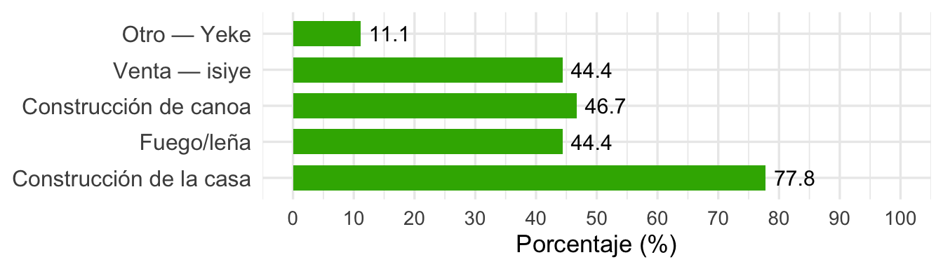 Productos del bosque: Uso y venta de madera y productos forestales no maderables.