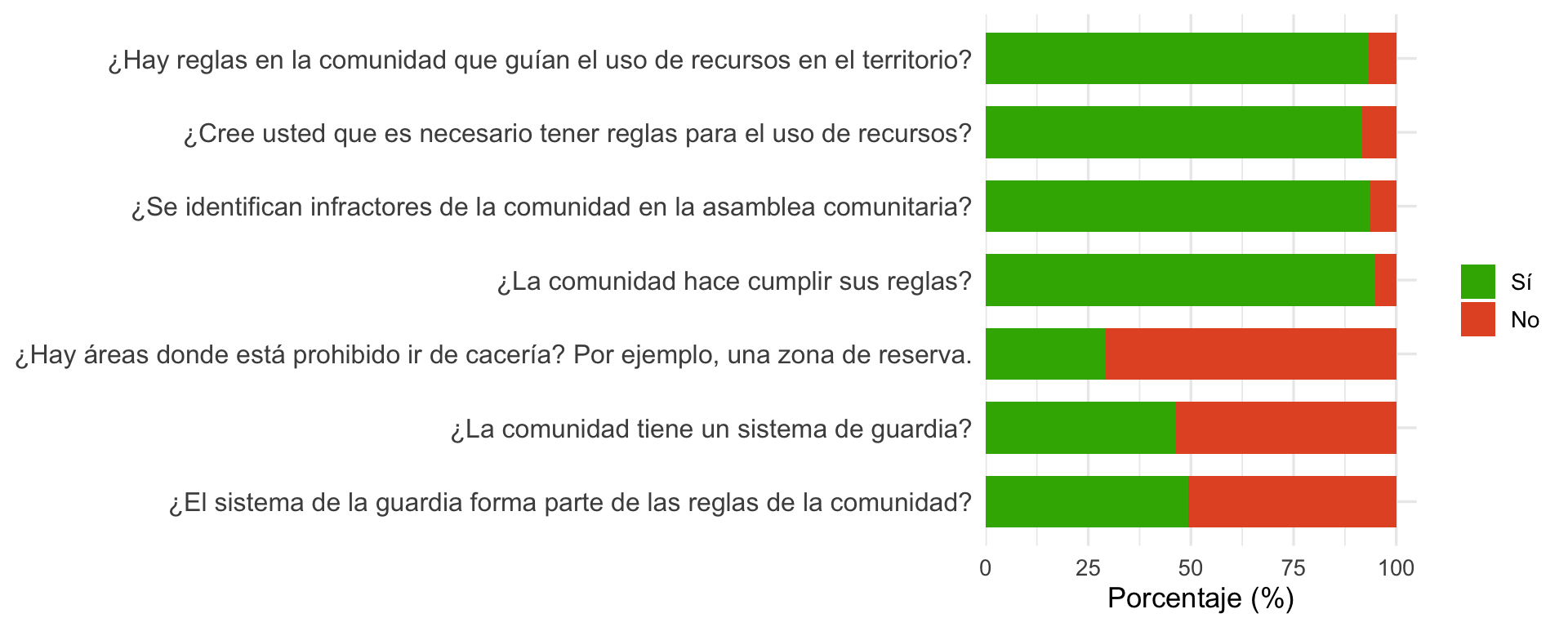 Normas comunitarias y gobernanza: Existencia, fortaleza y aplicación de reglas sobre el uso de recursos, así como mecanismos de toma de decisiones, votación y participación.