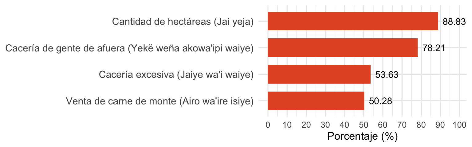 Caza, pesca y recolección: Frecuencia, herramientas y métodos, cambios a lo largo del tiempo, transmisión intergeneracional de conocimientos y percepciones sobre abundancia y amenazas de los recursos.
